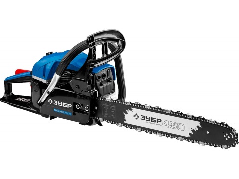 Идеальный вариант для пиления досок, бруса, стволов различных пород дерева на дачном участке. В отличие от электрической, бензиновая пила оснащена более мощным двигателем, безопасна в отношении поражения электрическим током, может работать в любую погоду и в любом месте. Функции легкого запуска, автоматической смазки цепи и эффективная антивибрационная защита делают пилу легкой в обращении и комфортной в работе. Двойной тормоз цепи, приводимый в действие при откидывании защитного щитка или при отпускании клавиши блокировки на рукоятке, а также встроенный цепеуловитель и металлический упор делают пилу безопасной в применении. Большая удельная мощность, высокое качество применяемых материалов и изготовления, обеспечивающие увеличенный ресурс, делают бензиновую пилу ЗУБР Вашим лучшим помощником