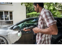 Пеногенератор образует густую пену, которая наносится на очищаемую поверхность. Это бачок объемом 500-1000 мл, который крепится с помощью патрубка на пистолет мойки. Внутрь наливается моющее средство, которое через форсунку вбрасывается в струю. Важно обратить внимание на: