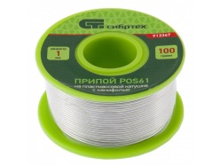 Припой с канифолью, D 1 мм, 100 г, POS61, на пластмассовой катушке Сибртех СИБРТЕХ 913367