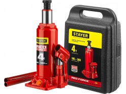 Домкрат гидравлический бутылочный "RED FORCE", 4т, 195-380 мм, STAYER 43160-4 43160-4_z01
