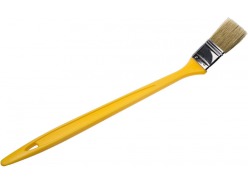 • Радиаторная. Представляет собой одну из разновидностей специальной флейцевой кисти, которая имеет изогнутую ручку и адаптирована для окрашивания труднодоступных поверхностей (радиаторы отопления, решетки, трубы и др.).