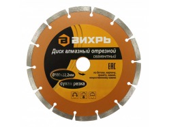 Диск алмазный отрезной сегментный 150х22,2 мм,сухая резка 73/10/3/3 Вихрь