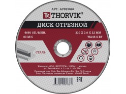 ACD23020 Диск отрезной абразивный по металлу, 230х2.0х22 мм Китай 52377