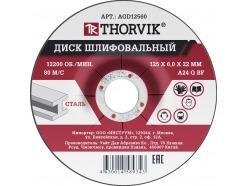 AGD12560 Диск шлифовальный абразивный по металлу, 125х6х22 мм Thorvik 52373