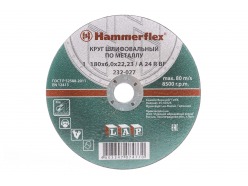 180 x 6.0 x 22,23 A 24 R BF Круг шлифовальный Hammer Flex 232-027 по металлу цена за 1шт 86948