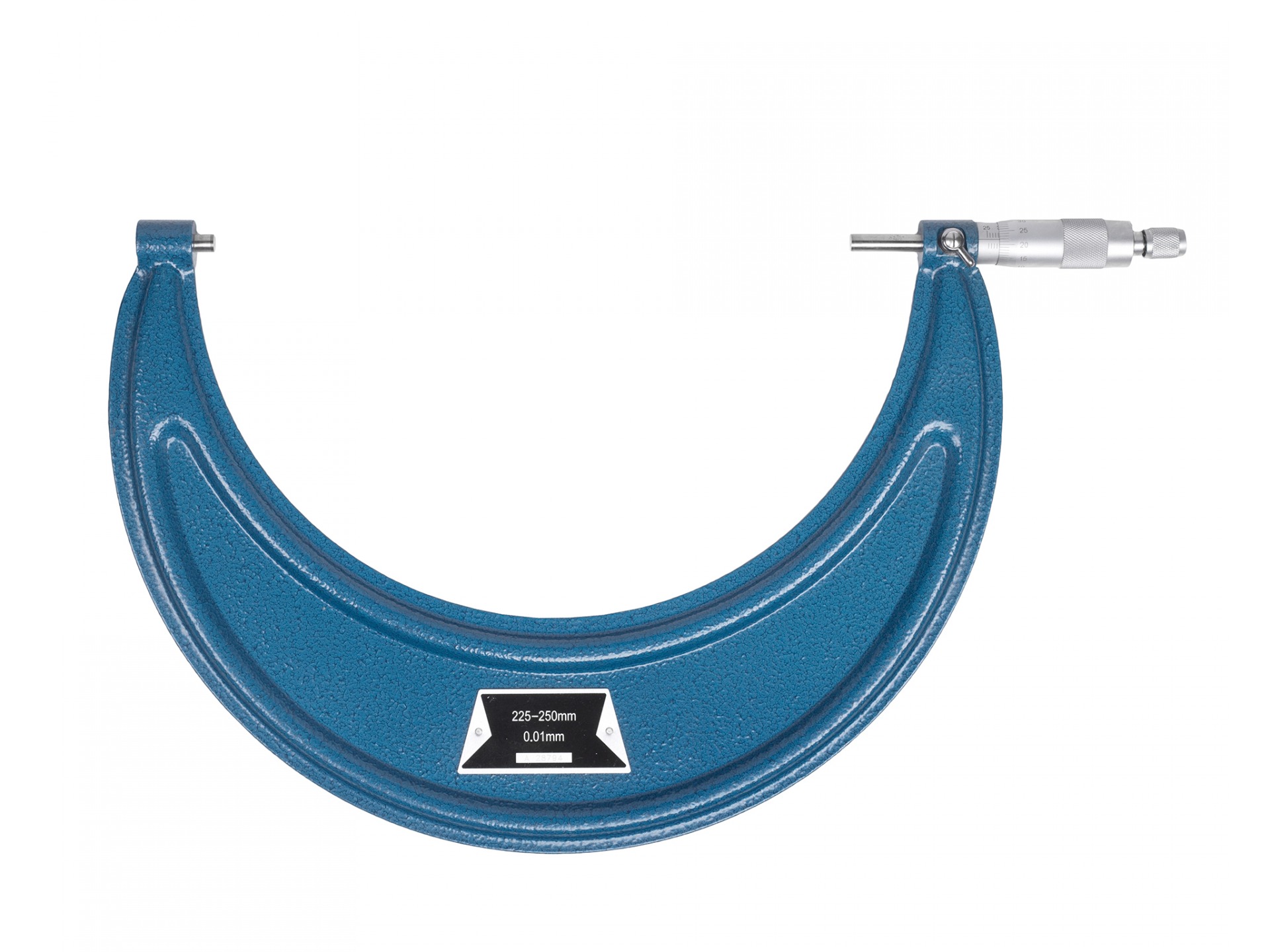 Микрометр гладкий МК-250 0.01 SHAN предназначен для измерения наружных размеров изделий. Измерительные поверхности оснащены твердым сплавом. Для установки микрометров в начальное положение предназначены установочные меры. Приборы с интервалом измерений не более 25 мм (от 50 до 300 мм) комплектуются одной установочной мерой, а с интервалом измерений 100 мм (свыше 300 мм) комплектуются двумя установочными мерами и четырьмя сменными пятками. Скобы микрометров оснащены термоизолирующими накладками и обеспечивают повышенную жесткость. Цена деления 0,01 мм. Отсчет - по шкалам стебеля и барабана.
