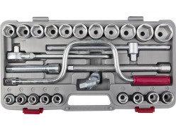 • Наборы головок торцевых незаменимы при работе с крепежными элементами разного размера (гайки, болты). Материал изготовления – высокопрочная хромванадиевая или хромомолибденовая сталь, устойчивая к нагрузкам. Количество оснастки в комплектах разнится, что упрощает выбор наилучшего варианта.