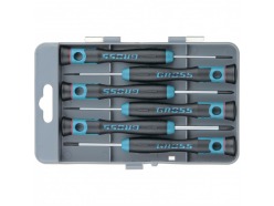 Набор отверток для точной механики, двухкомпонентные рукоятки, 6штук, пластиковый бокс, CrMo GROSS 13347