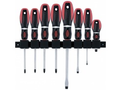 • Наборы отверток пригодятся и профессионалу, и мастеру-любителю. Комплектация содержит прямые и крестовые отвертки, а также биты и держатели различного размера.