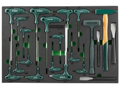 Набор угловых отверток (торцевых ключей), шестигранных и TORX®, молотков и зубил. 21 предмет в EVA ложементе 560х400 мм. H10121SV JONNESWAY 49273