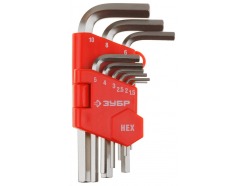 Набор ЗУБР Ключи "МАСТЕР" имбусовые короткие, Cr-V, сатинированное покрытие, пластик. держатель, HEX 27460-1_z02