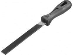 Напильник необходим для работ по шлифовке и затачиванию элементов из различных материалов. Конструктивно инструмент представляет рукоятку из пластика и стальной стержень с насечками, различающимися по размеру и частоте нанесения. По степени обработки, инструменты делятся на драчевые (черновые), личные (чистовые), бархатные (финишные).