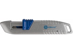 Нож технический КОБАЛЬТ "Безопасный", трапециевидные лезвия 19 мм (3 шт.), металлический корпус 242-083