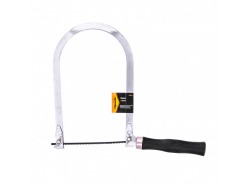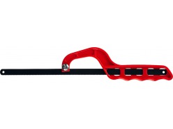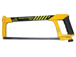 - По металлу – состоит из С-образной рамы и узкой пилки с маленькими зубьями, которая крепится и регулируется установленным на конце винтом. Такие пилы оснащаются пластиковой или прорезиненной рукояткой.