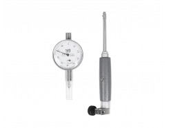Состоит из индикатора часового типа и измерительной головки. Индикатор имеет две шкалы. Большая шкала с ценой деления 0,01 мм и полным оборотом стрелки равным 1 мм. По маленькой шкале отсчитывают обороты (миллиметры).
