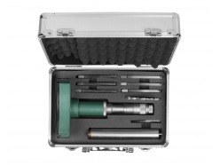 Почему вам необходимо купить нутромер в Москве? Универсальный прибор используется для измерения расстояния между 2-мя поверхностями. Сменные наконечники позволяют увеличить диапазон измерений. Точность замеров такая же, как у микрометра — 0,01 мм. Есть приборы, которые позволяют проводить измерения с повышенной точностью (до 0,001 и 0,002 мм). Погрешность измерений от эталона минимальна. Чтобы защитить устройство от грязи и забоин, его хранят в специальном футляре с отверстиями по размеру.