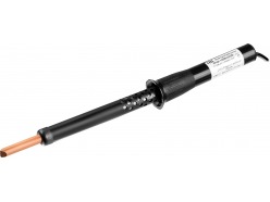 - Стержневой паяльник - прибор, состоящий из деревянной либо пластиковой ручки с выходящим из нее металлическим стержнем, который и передает тепло от нагревателя. Перед использованием этой разновидности необходимо дождаться, пока стержень нагреется.