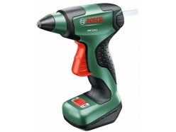 Это универсальный электрический инструмент, который имеет небольшое отверстие, куда вставляется сменный стержень. Встроенный нагревательный элемент, который присутствует внутри корпуса, разогревает клей до состояния жидкой массы, что в свою очередь передается через специальное, разного диаметра сопло.