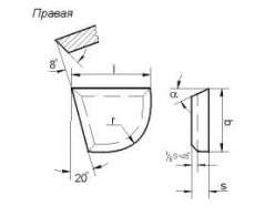 06030 Т15К6 правая (10х8х3х5) (для подр. и расточных резцов под глухие отв.)
