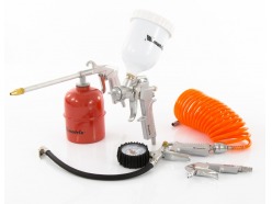 Набор пневмоинструмента, 5 предметов, быстросъемное соед., краскорасп. с верхним бачком// MATRIX 57304