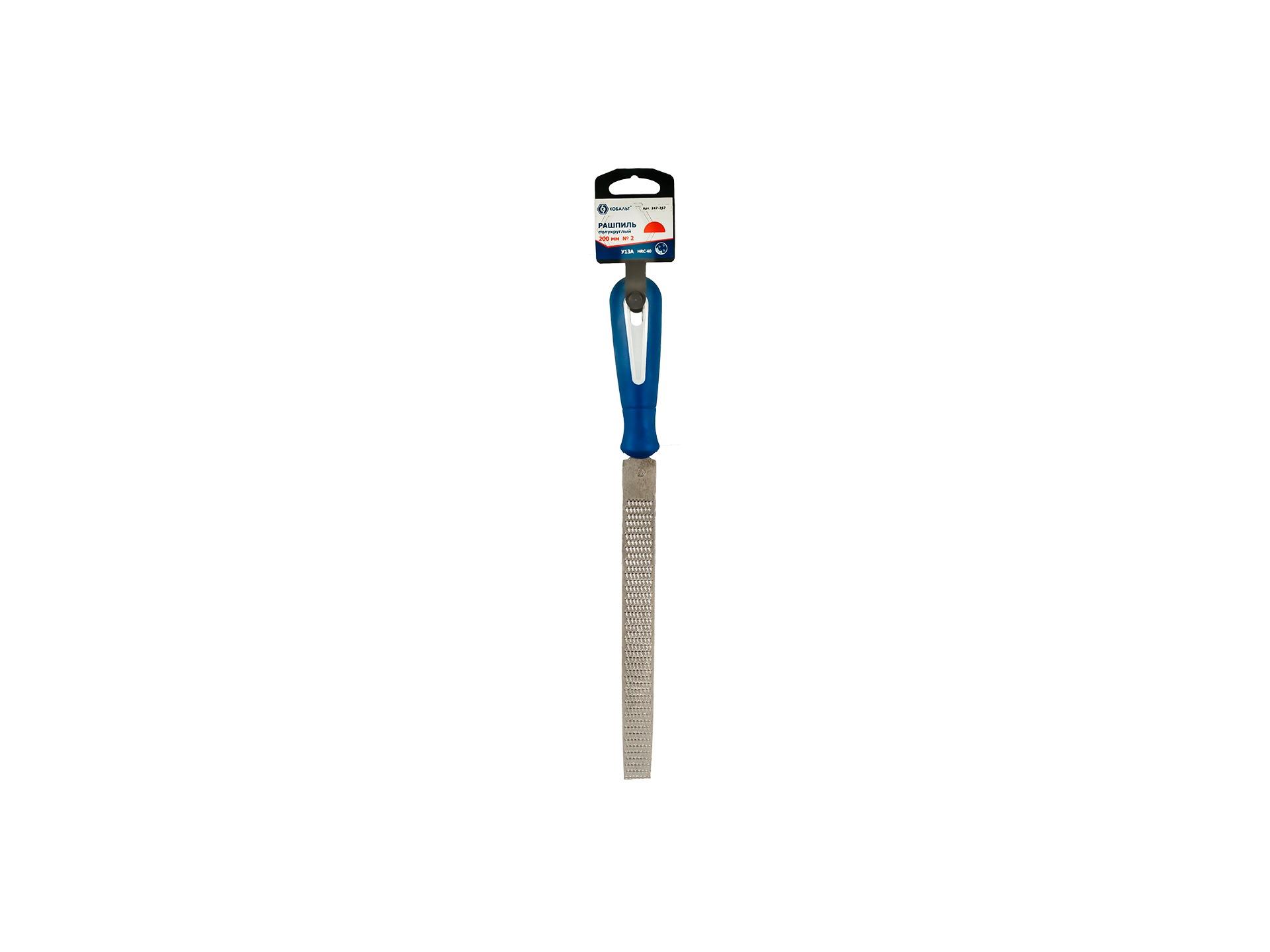 Рашпиль полукруглый КОБАЛЬТ двухкомпонентная рукоятка, № 2, 200мм, подвес 247-767