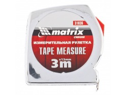 Рулетка Chrom, 3 м x 13 мм, хромированный корпус MATRIX 31036