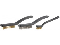 Ручные зачистные щетки – специальные инструменты, применяемые для грубой зачистки поверхностей с целью отшелушивания ржавчины, чешуек краски и подобных наслоений. Обработка таким инвентарем является важнейшим этапом перед покраской изделия. Изготавливаются из деревянной ручки-основы и стальной проволоки. Различаются длиной рабочей части, толщиной проволоки и числом рядов.