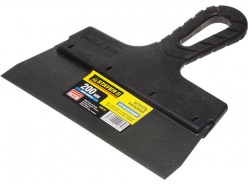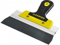 - Малярный — приспособление с рукояткой, которым шпаклюют и штукатурят внутри помещений, очищают от обоев и краски.