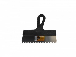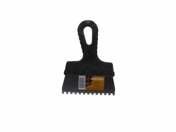 • Гребенчатый — зубцы, расположенные по лезвию, способствуют равномерному нанесению строительных смесей. Используется для нанесения клеевого состава при укладке плитки, работы с декоративной штукатуркой, удаления обоев.