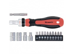 Отвёртка реверсивная с набором бит и насадок торцевых,CrV,1/4",16шт MATRIX 11332