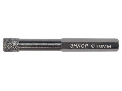 Сверло алмазное по керамограниту D 10 мм, хв 6 гр, сух. рез ЭНКОР 48322