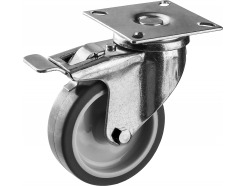 Колесо поворотное с тормозом d=75 мм, г/п 60 кг, термопластич. резина/полипропилен, ЗУБР 30946-75-B