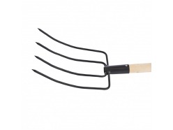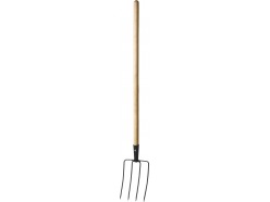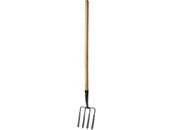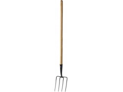 - Уборочные. Применяются при работе с травой, сеном, перегноем и при обработке масштабных площадей почвы. Оснащены четырьмя зубцами, которые в сечении могут напоминать круг, овал, многогранник или быть плоскими. Круглые и многогранные вилы зарекомендовали себя при работе с землей и сеном, а плоская конфигурация подходит для сбора урожая картофеля и других культур.